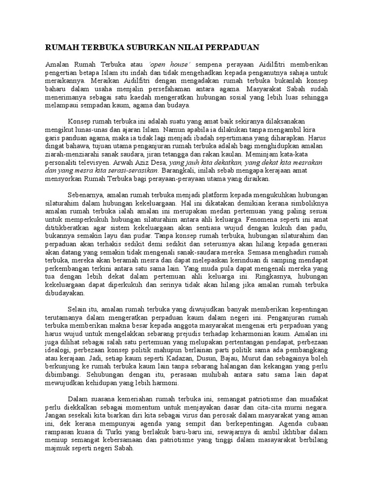 Doc Karangan Cemerlang Spm Kebaikan Amalan Rumah Terbuka Najat Ruhi Academia Edu